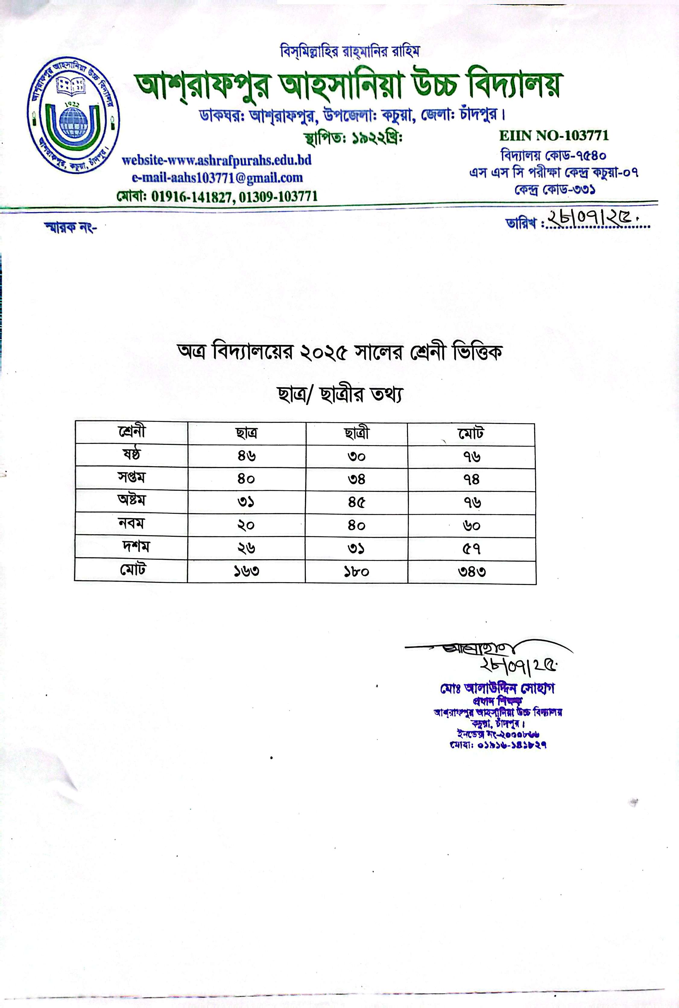লিঙ্গভিত্তিক শ্রেণী শিক্ষার্থীদের তথ্য